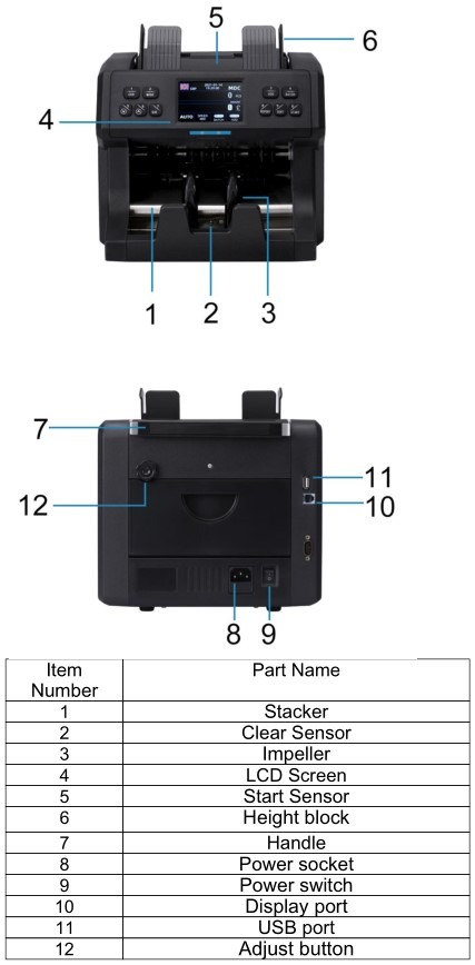 Velocidad de conteo: 900 – 1,500 billetes por minuto.