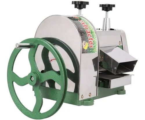 Las perillas superiores permiten ajustar la presión entre los rodillos para adaptarse al grosor de la caña.